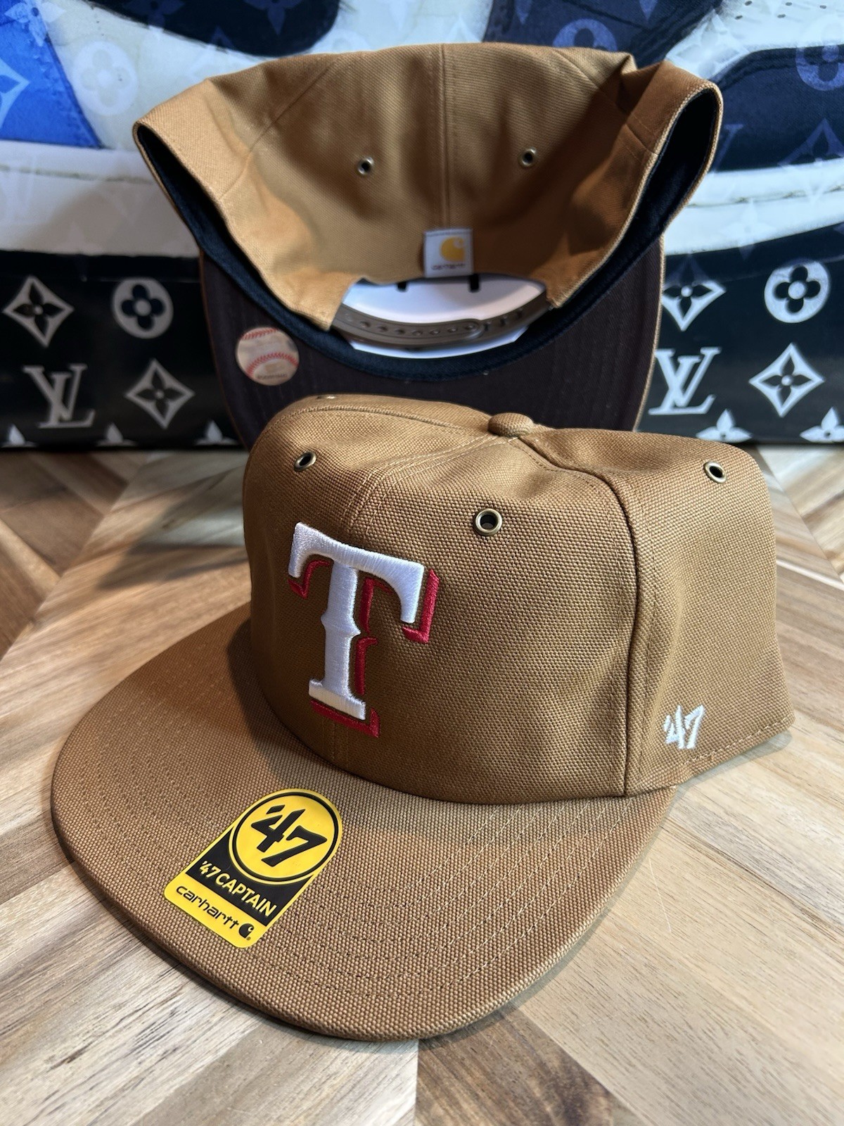 The product is an Authentic ‘47 Brand x Carhartt Texas Ranger Snap Back Captain OSFA hat, featuring a solid brown color with various character elements such as Concepts, Bodega, Purple, Varsity, and 20th Anniversary. This baseball cap is designed for casual occasions and made of polyester material, with an adjustable and breathable design. It pays homage to various themes including MLB, Hip Hop, Sports, and Star Wars, making it a unique and sought-after accessory for men. The hat is part of the 59fifty product line and is a limited edition release, making it a valuable addition to any collection.