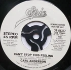 Artist: Carl Anderson Title: Can't Stop This Feeling Format: 7" Label & Cat No: CBS 3406357 Grading: EX/VG Year: 1980s Additional info: US pressing in picture sleeve, demo, Can't Stop This Feeling/A Woman In Love *********************************************************************************** • thespacebar.records have been selling vinyl online for over 20 years. • We don't use stock photos. What you see is what you get. If we have multiple copies we'll send the best one. • If there are any issues when we come to pack up your record we will message to let you know and wait for you to confirm or cancel prior to shipping. • Much of our stock is in near-perfect condition. • Many items are unplayed but are graded conservatively as EX. • We're in the process of adding more photos to our listings. It's a big job. In the meantime if you'd like to see more images of any item, please send a message and we'll fast-track it. • We grade the vinyl 1st and the sleeve (if applicable) 2nd. • If there is only one grading and it seems very cheap, please check the item description carefully as we sell some records without sleeves and some sleeves without records. We always check with buyers before posting these items. • Singles that don't have a picture sleeve are supplied in an original company sleeve where possible. Otherwise they are sent in a plain white sleeve. • Records are supplied with a 400g polythene sleeve for protection. • To prevent seam splits, records are removed from their original sleeves for posting. • Everything is pressed in the UK unless otherwise stated in the item description. • More information/track listings/photographs available on request. Enjoy browsing our shop - Jeff & Catherine