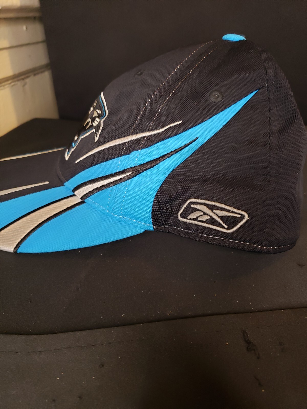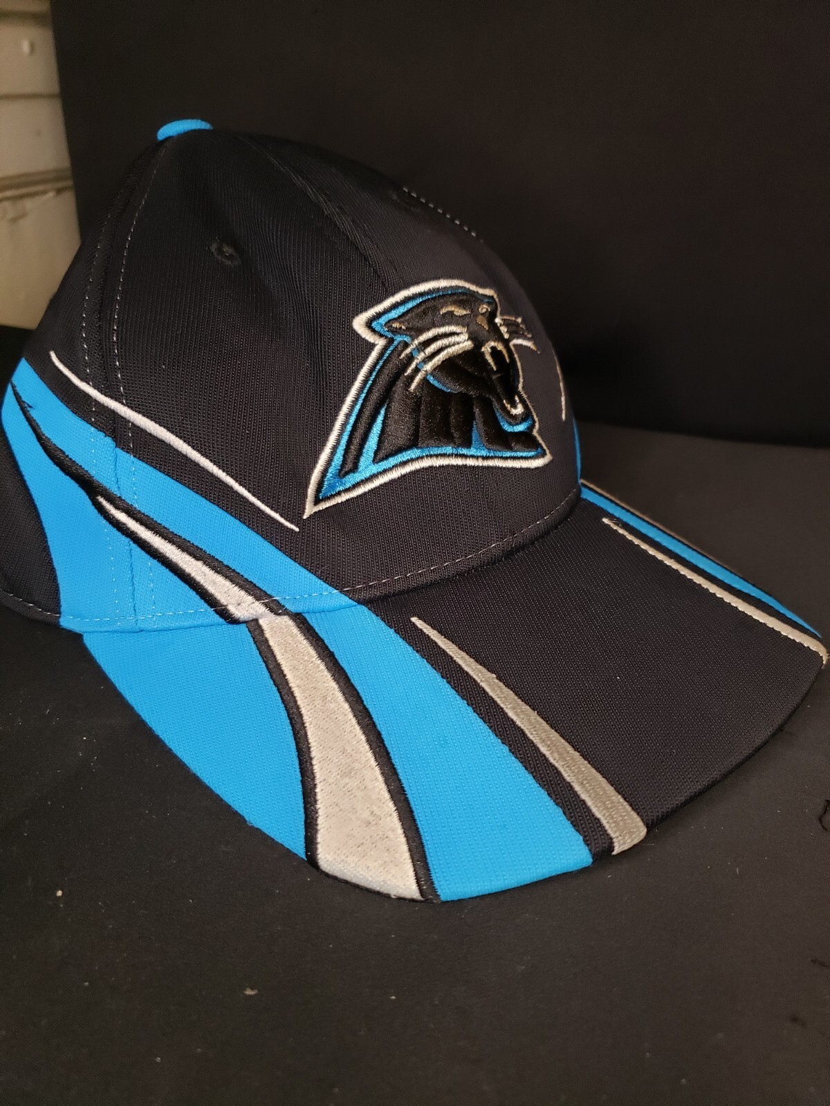 Carolina Panthers Blue and Black Reebok NFL Adjustable Cap This is a Carolina Panthers Reebok NFL Adjustable Cap in black and blue colors. It is officially licensed by the National Football League (NFL) and features the team's logo. The cap is designed for men and is one size fits all, making it suitable for any fan looking to show their support for the Carolina Pan