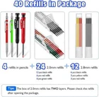 Carpenter Pencils Kit with 40 Refills, 4 Pcs Mechanical Colorful Deep Hole Woodw