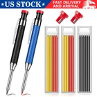 2 Pcs Mechanical Carpenter Pencils with Built-in Sharpener + 18 Refills, Long Nose Deep Hole Carpenter Pencil for Carpenter Woodworking Construction Features: 【Sturdy & Practical】Woodworking pencils are made of sturdy ABS for lasting, matched with 2.8mm thick traceable 2B grease refill. Not easy to bend, break and damage during use. Can draw smooth lines on smooth or rough surfaces. 【Deep Hole Design】45mm slender tip can reach difficult-to-reach holes or in narrow areas, comes with 3 colors refills of red, yellow and black, wooden metal dark surface uses yellow-red, cement light-colored surface uses gray refills to distinguishes the marks with different meanings. 【Built-in pencil Sharpener】Carpenter pencils top is equipped with an anti-lost pencil sharpener that can sharpen accurate refills at any time as needed. 2 colors woodworking pens (Each pre-installed refill), 18 refills in 3 colors (3 anti-damage refill boxes), meet your daily needs or share with others. 【Efficient Design】Solid carpenter pencil clip design can be easily hung on a pocket, or belt, convenient to carry around, and not easy to lose. Ergonomically designed non-slip handle saves effort and is not easy to slip. Comfortable to hold, repeatable depiction, and improve the work efficiency of architects and bricklayers. 【Wide Application】Carpenter pencils with sharpeners are suitable for architects, carpenters, craftsmen, and designers to draw marks on various dark or light-colored surface materials such as metal, plastic, glass, wood, tile, concrete, paper, etc. Specification: Material: Wood, Glass, Plastic, Metal Color: Multicolor Point Type: Deep Ink Color: Black Age Range: Adult Special Feature: Refillable Package Included: 2pcs* Carpenter Pencils 18pcs* Refills
