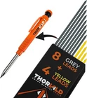 Carpenter Pencils Mechanical Construction Pencil Woodworking Marker Finger Grip ✅WRITE ON WOOD, METAL BUT ALSO CONCRETE AND TILES: Are you having a hard time tracing on concrete and metal? Writing on a dark surface is no longer a problem thanks to the yellow leads provided with the construction pen! What's more, the included leads are perfect for tracing anywhere and stronger than dry leads. This makes it the ideal construction pencil for carpenters, masons, and the like, as well as for all other trades! 👍THE ESSENTIAL 3-IN-1 PENCIL RECOMMENDED BY PROFESSIONALS! This professional carpenter pencil brings together everything a handyman needs: it's solid, precise, and practical, and thanks to its orange color it's easy to find, even in the middle of a carpentry project! Moreover, its fine point of 6 mm and 43 mm length allows it to go and trace in any hole. And if you extend the lead, you can even trace in holes of 2.8 mm! ✅THE MOST CONVENIENT CARPENTER PEN WITH SHARPENER PERFECT FOR WORKSITES: It is so practical that you won't lose it since it attaches directly to your pocket with its quick and solid clamp. What about sharpening the lead? No problem, the lead sharpener is screwed into the top of the lead holder pen. Thus, it will not get lost and your lead will always be well sharpened for precision work! 👍NEW 3-IN-1: REDESIGNED ERGONOMICS FOR MAXIMUM COMFORT: Thanks to the new finger grip, our new construction marking pen ensures you write much easier than with any other construction pencil. Plus, the grip is removable! Switch to deep hole marker mode in no time! With our 3-in-1 pencil, the days of never having the right pencil at hand are over! ✅WORKPACK: 1 PENCIL AND 6 LEADS INCLUDED! Do you have plenty of work to do? Don't panic, a box of 6 leads is included with the carpenter pencil, which makes a total of 7 leads! You will receive 1 gray lead in the construction pencil + 4 gray and 2 yellow leads in the refill pack. Take advantage of our 30-days money back guarantee. Go for the big jobs! ⭐PREMIUM-QUALITY PEN FOR CONSTRUCTION WORKER + 30-DAY MONEY BACK POLICY: We make ingenious, quality tools. Enjoy Thorvald quality without any risk with our 30-day money back policy. Here's to big jobs! Product Description Are you tired of standard pencils that need to be sharpened Are you looking for a solid, practical, and reusable carpenter's pencil? This carpenter's pencil pack with a removable grip is the one for you! It's a must-have recommended by professionals, containing the essentials to start your work right away! Here's why: WRITE ON WOOD, METAL BUT ALSO CONCRETE AND TILES: Are you having a hard time tracing on concrete and metal? Writing on a dark surface is no longer a problem thanks to the yellow leads provided with the construction pencil! What's more, the included leads are perfect for tracing anywhere and stronger than dry leads. This makes it the ideal construction pencil for carpenters, masons, and the like, as well as for all other trades! THE ESSENTIAL 3-IN-1 PENCIL RECOMMENDED BY PROFESSIONALS! This carpenter's pencil brings together everything a handyman needs: it's solid, precise, and practical, and thanks to its orange color it's easy to find, even in the middle of a carpentry project! Moreover, its fine point of 6 mm and 43 mm length allows it to go and trace in any hole. And if you extend the lead, you can even trace in holes of 2.8 mm! THE MOST CONVENIENT PENCIL WITH SHARPENER, PERFECT FOR WORKSITES: It is so practical that you won't lose it since it attaches directly to your pocket with its quick and solid clamp. What about sharpening the lead? No problem, the lead sharpener is screwed into the top of the lead holder pen. So, it won't get lost and your lead will always be well sharpened for precision work! NEW 3-IN-1: REDESIGNED ERGONOMICS FOR MAXIMUM COMFORT: Thanks to the new finger grip, our new construction marking pen ensures you write much easier than with any other construction pencil. Plus, the grip is removable! Switch to deep hole marker mode in no time! With our 3-in-1 pencil, the days of never having the right pencil at hand are over! QUICK-RELEASE CLIP FOR POCKET AND BELT! The carpenter's pencil has a quick-release clip for quick and easy attachment to your pocket. Be more efficient with this great carpenter's pencil! STURDY CARPENTER'S PENCIL FOR THE WORKSITE! Our new carpenter's pencil has been designed to have a long life! It was conceived to be resistant and underwent several tests to make it a robust carpenter's pencil, ideal for all construction sites! WORKPACK WITH 1 PENCIL AND 6 LEADS INCLUDED! Do you have plenty of work to do? Don't panic, a box of 6 leads is included with the carpenter pencil, which makes a total of 7 leads! You will receive 1 gray lead in the construction pencil + 4 gray and 2 yellow leads in the refill pack. Get the job done! YOU HAVE A DOUBT? OUR PRODUCT ARE TOP QUALITY! Do you still hesitate to opt for our pencil? With us, no stress because the most important for us is your satisfaction thanks to the quality of our products. TECHNICAL FEATURES: Length: 145 mm Diameter: 12 mm Materials: Stainless steel and ABS Premium Color: Orange and Black Lead diameter: 2.8 mm INCLUDED IN THE PACK: 1 THORVALD New carpenter pencil with 1 lead inside 1 Removable easy-write grip clipped onto the pencil 1 Lead sharpener already screwed into the pencil 1 Box of 6 leads (2 yellow and 4 gray) 1 User manual Online 0.47 inches x 5.7 inches x 0.47 inches. Weight: 1.76 oz Item model number THORNS-02 Closure Retractable Style Carpenter Pencil + 7 Leads Writing Instrument Form Scriber Pencil Lead Degree (Hardness) H Color Orange Line Size 2.8 Millimeters Material Type Stainless Steel, Plastic Grip Type Ergonomic Manufacturer Part Number 578643 Item Weight 1.76 ounces Is Discontinued By Manufacturer No Age Range (Description) Adult Ink Color Gray Size 1 Count (Pack of 1) Point Type fine point/best Product Dimensions 5.7 x 0.47 x 0.47 inches Nu