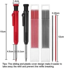 [Long Nib and Deep Hole Marker]: Our mechanical carpenter pencil with 45mm nib is designed for easy marking of deep holes or narrow areas. These construction pencils are the great choice for woodworking tools, construction tools, carpenter tools, contractor tools, wood carpentry tools and architect tools. [Extra Refills in 2 Colors for Versatile Marking]: The construction mechanical pencil comes with 12 extra 2.8mm refills, including 6 red and 6 black refills. The black refill is suitable for light surfaces, while the red wax is perfect for dark surfaces. Our carpenter mechanical pencil makes sure that you'll have an ample supply for extended use. [Built-in Sharpener]: Our construction pencil comes with a built-in sharpener to ensure the mechanical pencil tip is always sharp and ready for use. Never buy an extra pencil sharpener again. A great tool for any woodworker pencil, contractor pencils. The refill can easily be extended or retracted with a simple click of the pencils mechanical, allowing you to work more efficiently and accurately. [Portable Clip Design]: Our deep hole construction pencil features a portable clip design, easy to carry and attach to your pocket or tool box, so that you can keep the carpenter pencils mechanical close at hand, making it a convenient tool to have on the go. Great gifts choice for carpenters. [Stronger Pencil Lead]: The black refills are made of lead, sturdy and smooth. The red refills are made of wax, clear and light. These marking pencils are much thicker and stronger than normal pencils during the marking process of construction work, suitable for various surfaces, such as glasses, metal, boards, floors, walls, furniture, etc. The written marks can be easily wiped with a wet paper towel when needed. [Precise marking with 2.8 mm tip]: With a 2.8 mm tip, our deep hole pencil produce smooth and clear lines for finer and more precise scribing and marking. Perfect for all marking tasks in deep holes, corners, curved surfaces, etc. Our woodworking pencils set is an essential multi-tool pencil for sketching construction, marking tool for carpenters, pencil tool for architects. [Comfortable and Ergonomic Grip]: The mechanical construction pencils feature a comfort grip design that provides a comfortable hold. The groove of the pencil body provide the friction and reduce pain, allowing you to work for extended periods without discomfort. Our work pencil are the perfect tool for professionals and carpenters, such as bricklayers and tilers, enabling you to focus on your work without feeling any pressure. Great for marking cuts,drawing sketches and renderings.