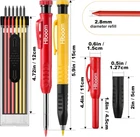 Carpenter Pencils Set with 24 Refills, 2.8 Mm Mechanical Carpenter Pencils Pencil Protective Cap: this carpenter pencil comes with a cap to protect metal parts from dust, liquids and rust, extending pencil's service life Built in Sharpener: rotate the sharpener counterclockwise from the tip of the pencil, easy to carry and use, will not be lost Deep Hole Marker: the solid carpenter pencil has 45 mm/ 1.8 inch long nose tip, allows you to reach narrow areas; Suitable for mechanic, architect, woodworker, designer's work Widely Application: these mechanical carpenter pencils can be drawn on paper, plastic, wood, metal, cement wall, etc.; Reliable and firm woodworking tool is not easy to break Delicate Design: the stripe design at the carpenter pencil increases the friction and grip, so the repeated drawing will not slip from the hand; The clip design is for easy access and can be clipped in your pocket to improve your efficiency Carpenter Pencils Set with 24 Refills, 2.8 Mm Mechanical Carpenter Pencils 6.22 inches x 6.34 inches x 0.67 inches. Weight: 8.4 oz