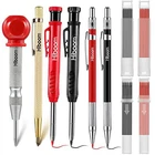 Return Policy Fast Delivery Trusted seller Carpenter Pencils with Center Punch, Deep Hole Marking Pencile Mechanical with Built-in Sharpener, Carbide Scribe Tool Woodworking Pencils with 40 Refills Red Gray, for Architect Carpenter Product Description Built in Sharpener Carpenter Pencils: the mechanical carpenter pencil comes with a built in sharpener into the top for your convenience; 45mm Extended nib design, reaching some areas w other carpenter markers do not go, suitable for marking deep holes or other tight areas Practical Center Punch Tool: the automatic center punch is made of chrome plated steel body, have high impact resistance and wear resistance; The red cap on the top can give you a good grip while you apply pressure, unscrewing it can adjust the force of impact; A deep knurled finger grip for easy handling and better control with one hand; Makes center punching a breeze; This center metal punch is good for wood, plastic, metal, glass, and leather Metal Carbide Scribe: this carpenter scribe tool has a reliable tungsten carbide tip and knurled aluminum body can offer the maximum control force and comfort; The metal scribe came with a protective vinyl cap over the scribe tip, to help prevent the tip from damaging anything while it is being stored; Ideal for marking measurements and making desired markings Good Combination: you will get 4 pieces of solid mechanical carpenter pencils with 40 pieces of marker refills, 1 piece of carbide scribe tool and 1 piece of automatic center punch tool; Multiple mechanical pencil marker marking tools can meet your different woodworking marking needs Widely Applied: this carpenter tool kit can be applied for construction, metal trim, automotive, glass window breaker, pilot holes for hole saws, works well on wood, plastic, steel, wall and so on Shipping Returns Payment Shipping Shipping is FREE to all addresses other than APO/PO boxes in the lower 48 states. All our stock ships from US-based warehouses. Shipped via USPS or UPS (depending on location and package weight) Unless stated otherwise, all orders will ship within 24-72 hours of your payment being processed. Check our feedback to see the great reviews of FAST shipping we offer. Returns Seller does not accept returns Payment We currently accept payment via eBay managed payments only. Once payment is cleared, we will dispatch your shipment within 1-3 business days. Please refer to the "Shipping" tab for more information regarding shipping speed to your destination.