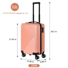 【OVERALL DIMENSION】 13.38” x 9.84” x 21.45” (Including wheels), Weight: 5.94 lbs. Packing Capacity: 33 L. Extremely perfect spinner luggage for work travel, weekend getaways, and international carry-on. 【Super Mute 360° Double Spinner Wheels & TSA Combination Lock】 Double Spinner Wheels are equipped with the premium wheel shaft updated by silent technology that can effectively reduce the noise by lowering the friction during using. And it's easy for 360 degree rotation at random in various road condition; With the built-in safety lock, you can lock the luggage compartment easily and securely. 【Material Upgrade】The suitcase benefits hugely from its ABS+PC hard plastic shell. it goes through insanely strict quality control test standards, creating strong and sturdy pieces that can withstand any forms of rough handling. 20inch is perfect carry-on, ideal for personal or business trip. Handle: 3-step pure aluminum telescoping handle for comfortable maneuvering. Wheels: four spinner wheels allow the suitcase to move seamlessly through 360 degrees of motion. Interior: The interior is fully lined with multi-use organizational pockets make it easy for packing clothes.