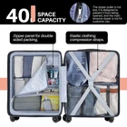 [Luggage that can be brought on the plane] This is a 21-inch suitcase, which meets the airline's standard for taking it on the plane, and you can take it on the plane without checking it. 21inch 15.7" x 9" x 22.2". [USB charging port] There is a built-in USB type charging port, you can put the power bank into the luggage and connect to the built-in interface, so that you can charge at any time without opening the luggage. [TSA Customs Lock] TSA Customs zipper lock, sturdy and reliable, gives you more peace of mind. When going through customs, you don't have to worry about the box lock being damaged due to brute force detection. (TSA locks do not come with keys) [Stronger material] The golden ratio composite material of ABS+PC is approved to have the coexistence of firmness and flexabilty. [Reliable Warranty] We provide a two-year warranty, you can always contact our after-sales team, we will actively solve the problem for you to your satisfaction.