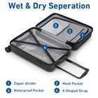 Carry On Luggage: Airline approved carry on luggage fits in overhead bins of most major domestic airlines while allowing for more packing capacity. 20 inch luggage is suitable for 1-2 days travel, airplane, train and car trips alike. Lightweight carry on allows you to make better use of weight allowance without any effort. Suitcase dimension: 21.7 x 13.8 x 9.8 in Spacious Interior: The full zipper internal partition and cross strap of carry on suitcase allow for easy compartmentalization and organization of your items. And the wet-dry separation layer has excellent waterproof performance in rainy and wet conditions. You can put toiletries in the wet pocket to keep clothes dry in the main Layer. TSA Lock Suitcase: Mounted TSA-approved lock, and fully lined interior divider with organization pockets, keep your belongings secured and organized in the luggage. Travel luggage sets with reinforced and upgraded YKK zippers to prevent zipper splitting effectively. Hardside Suitcases: Crafted with PC+ABS material, our hard case luggage is lightweight yet highly resilient. Withstands extreme temperatures of 40-50℃ without cracking, ensuring your valuables remain secure during your journeys. Spinner Wheels: Suitcase sets with 8 spinner wheels use high flat and straight shock-absorbing universal wheels to make the travel luggage quieter and smoother, ensuring 360° free rotation, Embrace superior directional control for perfect maneuverability on the go.