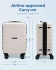 Carry On Luggage 22x14x9 Airline Approved with TSA Lock,20 Inch Lightweight Luggage with Spinner Wheels,100% PC Hard Shell Carry On Suitcases for Men Women,Off White Airline-Approved Boarding Size: 20 inch carry on luggage meets most airline requirements for overhead compartments. Suitcases with wheels are suitable for 3-5 day trips, air, train and bus travel. Travel luggage is upgraded with double-ended zippers and side-mounted TSA-approved locks to ensure smooth and hassle-free airline baggage screening for carry on suitcase measuring 22x14x9 inches with spinner wheels and handle. It has a volume of 35 liters and weighs only lbs. 20% Upgraded Bigger Expandable Design: The checked luggage is ingeniously designed with two main compartments and features the buckle compression system, keeping your clothes neatly arranged. The travel suitcase comes with a zippered mesh pocket for quick access to essentials, and a built-in small pocket for small items. Pulling open the zipper can expand by inches, adding an extra 7L of space, with a large capacity of 42L, helping you pack more items and keep your travel items organized. Excellent Craftsmanship: This hard shell carry on luggage is made of 100%PC for exceptional strength, flexibility, and lightness. The underseat carry on luggage with wheels has passed the shock drop test. The hard shell luggage texture is extremely scratch-resistant and not easily scratched, keeping the hard case luggage looking great on trip after trip. Superior Maneuverability: The rolling suitcase buttery smooth 360° swivel wheels are extremely quiet and durable, making it easy to navigate through airports, train platforms, sidewalks, and even cobblestone streets. The travel luggage has been upgraded with a sturdy and smooth four-level adjustable aluminum handle with multiple height options for your comfort. Soft silicone handles on the top and sides of the hard shell suitcases have been added to make the lightweight suitcase easier to lift. Premium Service And satisfaction: will back each piece of tsa approved carry on luggage with a 2- manufacturer's satisfaction. Before shipment, hard sided luggage with spinner wheels undergoes thousands of rigorous tests to ensure that our luggage meets strict standards and can withstand any journey. If there is any quality problem, please feel free to contact me. Professional and patient customer service will reply to your satisfaction in time.