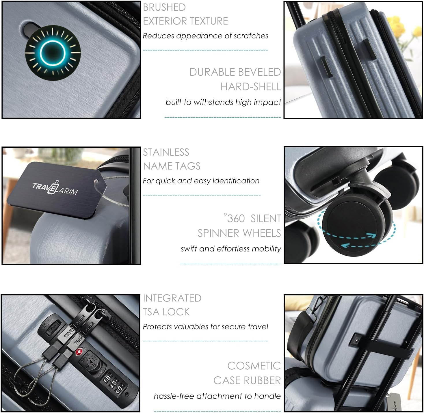 Store New Arrivals Add to Favorite View Feedback Contact Carry On Luggage Noble TSA Airline Approved Suitcase Carry-on 22x14x9 FREE SHIP Description Item model number VC-TA-L-GRY Capacity 3234 Cubic Inches Color Grey Product Dimensions 13 x 8.5 x 22 inches Item Weight 5 Pounds Department Unisex Adult Capacity Total 3234 Cubic Inches Size Carry-on 22 Inch 22 Inch Expandable Carry On Luggage: Small suitcase carry on measures 22”x14”x9” including wheels, meeting carry on luggage 22x14x9 airline approved requirements; and can expand 1.2”. Interior is 19.5”x13.5”x10.5” and includes large, zippered compartments. Cosmetic Case: The cosmetic case keeps smaller items like toiletries and valuables close at hand, with a zippered compartment and mesh pocket. An elastic strap keeps the cosmetic case secure on the suitcase handle. Cosmetic case measures: 6" W x 12" L x 10" H. Carryon Luggage with Spinner Wheels: Rolling carry on luggage for plane travel includes 4 spinner wheels that provide you with smooth, gliding 360 movement, a telescoping handle, stainless steel name tags, and TSA lock to secure your belongings. Tech-Friendly: The quick-access front compartment includes a padded laptop pocket, padded iPad pocket, and power bank pocket that can be integrated with the exterior USB port to charge your devices - BONUS insulated pocket to keep food cool and fresh. POWER BANK NOT INCLUDED. Hard Shell Carry On Luggage Set: The impact-resistant design of our luggage carry on suitcase and cosmetic case include beveled sides to deflect hard knocks and a brushed finish that reduces scratches. Enjoy hassle-free travel with carry-on luggage that works for you. Product description TECHNOLOGY FRIENDLY Our 22-inch carry-on luggage combines functionality and convenience with a USB charging port, integrated TSA lock, and specialized pockets for a power bank, laptop, iPad, and insulated cooler. Measuring 22" x 15" x 9.8" externally and 22" x 14" x 9" internally, it meets airline size requirements. The matching cosmetic case (6" W x 12" L x 10" H) is perfect for organizing toiletries and small valuables, ensuring everything you need is at your fingertips. Note: Power bank is not included. 1 Core Elements 2 Modern Conveniences 3 Important Features ORGANIZED INTERIOR Travel smart with our versatile carry-on luggage featuring a 13" W x 19" H x 8" D packing space. Its thoughtfully designed interior includes a large zippered compartment, zippered mesh pockets, a deep covered section, and a buckle-strapped area. Equipped with a USB charging port and an integrated TSA lock, this carry-on ensures convenience and security for your travels. The impact-resistant design provides durability and scratch resistance for hassle-free travel. ABOUT US We offer the best prices around on high quality products. Our E-store includes media such as books, movies, music and games while offering electronics, toys, sporting apparel, clothing, tools, general home, garden items and more. SHIPPING We are always working hard to ensure your package arrives as soon as possible. Please understand that some factors like weather, high postal traffic, and the performance of shipping companies are outside of our control. We offer free shipping to the lower 48 states and ship within 2 business days of payment, usually sooner. We do not accept P.O. Boxes. Please provide a physical address. For shipping outside of the continental USA, we only use eBay's Global Shipping Program.The item is shipped to KY and then sent to the rest of the world. International customers are responsible for all duties and taxes. Continue to check out in order to calculate costs for shipping the item to your country. Messages regarding eBay's Global Shipping Program MUST be directed at eBay EXCLUSIVELY. RETURNS We offer a 30-Day Return Policy on items which you are not completely satisfied with. You have the option for a full-refund or an exchange of the item. No returns are available on items shipped outside of the USA. PAYMENT We accept PayPal. CONTACT US This page content is yet to come Please ad us to your favorite seller and visit again later Thank You CUSTOMER SATISFACTION We try our very best to make sure every customer is completely satisfied. If there's a problem, message us! We're happy to help. WE ACCEPT Copyright © 2021 AutoDS. | All Rights Reserved