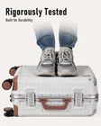 [3 layered 100% PC] Aluminum alloy suitcase boasts 3-layered 100% Polycarbonate, which can bear up to 180 pounds. Textured surface reduce the visibility of scuffs. Extremely lightweight, with excellent elasticity and compression resistance, no zipper aluminum luggage is designed to be wather&wear-resistant and durable. [Overall Dimension] 21.85 x 13.78 x 9.45 IN (Including wheels and handles). Capacity: 37 L, Weight: 6.94 lbs. Airline approved carry on luggage is perfect for business trips or Honeymoon trip. [360° spinner wheels, 8 wheels in total] Hard shell carry on suitcase with quiet and durable double spinner wheels, which ensure excellent directional control and riding effortless on multiple surfaces. Adjustable 3-level 100% pure aluminum telescoping handle allow you to quickly maneuver in tight spaces. Luggage is not a burden anymore, enjoy a truly relaxing trip with carry on Luggage. [Safer & Well organized] With 4 alloy corner guards protection, making your journey more secure. TSA COMBINATION LOCK provides excellent security throughout all your travels. Spacious Interior features cross straps and dividers for super easy packing. Multiple pockets to keep belongings neatly organized. [2-Year Warranty] Worldwide 2-year warranty replacement service. Luggages are rigorously tested to ensure that the travel products you trust meet stringent standard. If you have any questions,please feel free to contact us.