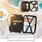 22 Inch Carry On Luggage, Carry On Suitcase with Wheels, Hardside Luggage Carry-On, Expandable Black Small Suitcase, Hard Shell Carry-on Luggage, Spinner Luggage with Cosmetic Bag About this item : 22 Inch Expandable Carry On Luggage: Small suitcase carry on measures 22”x13.5”x9” including wheels, meeting carry on luggage 22x14x9 airline approved requirements; and can expand 1.2”. Interior is 19.5”x13”x9” and includes large, zippered compartments. Cosmetic Case: Keep personal items and valuables close by. Cosmetic case features a zippered compartment, mesh pocket, and elastic strap that fits over the suitcase handle. Carryon Luggage with Spinner Wheels: Carry on luggage with spinner wheels provides gliding 360° movement, and features a telescoping handle, stainless steel name tags, and TSA lock. Tech-Friendly Compartment: Includes a padded laptop pocket, iPad pocket, and power bank pocket that integrates with the exterior USB port to charge your devices; plus an insulated food pocket. Hard Shell Carry On Luggage Set: The beveled sides of our expandable luggage carry on suitcase and cosmetic case are impact-resistant, and the brushed finish on our carry-on luggage reduces scratches.