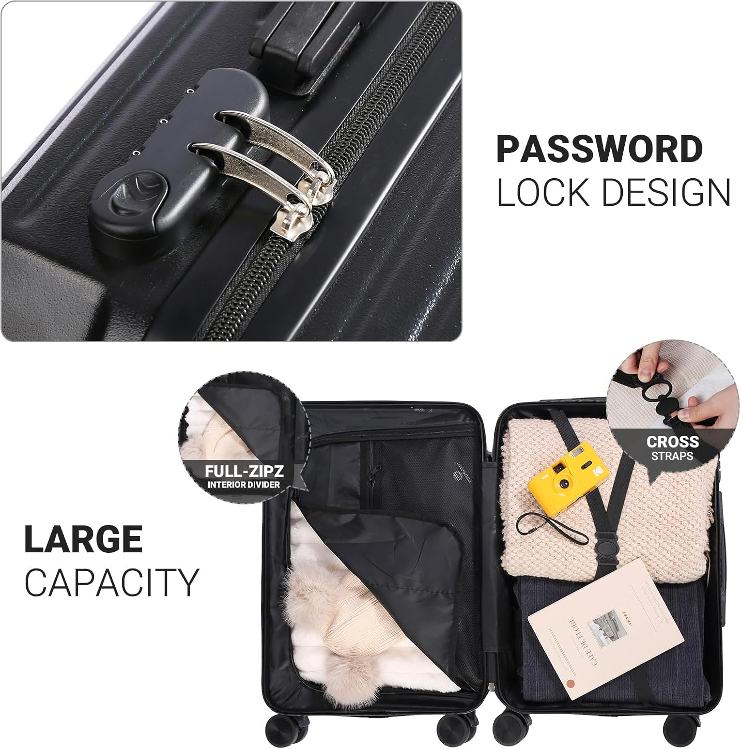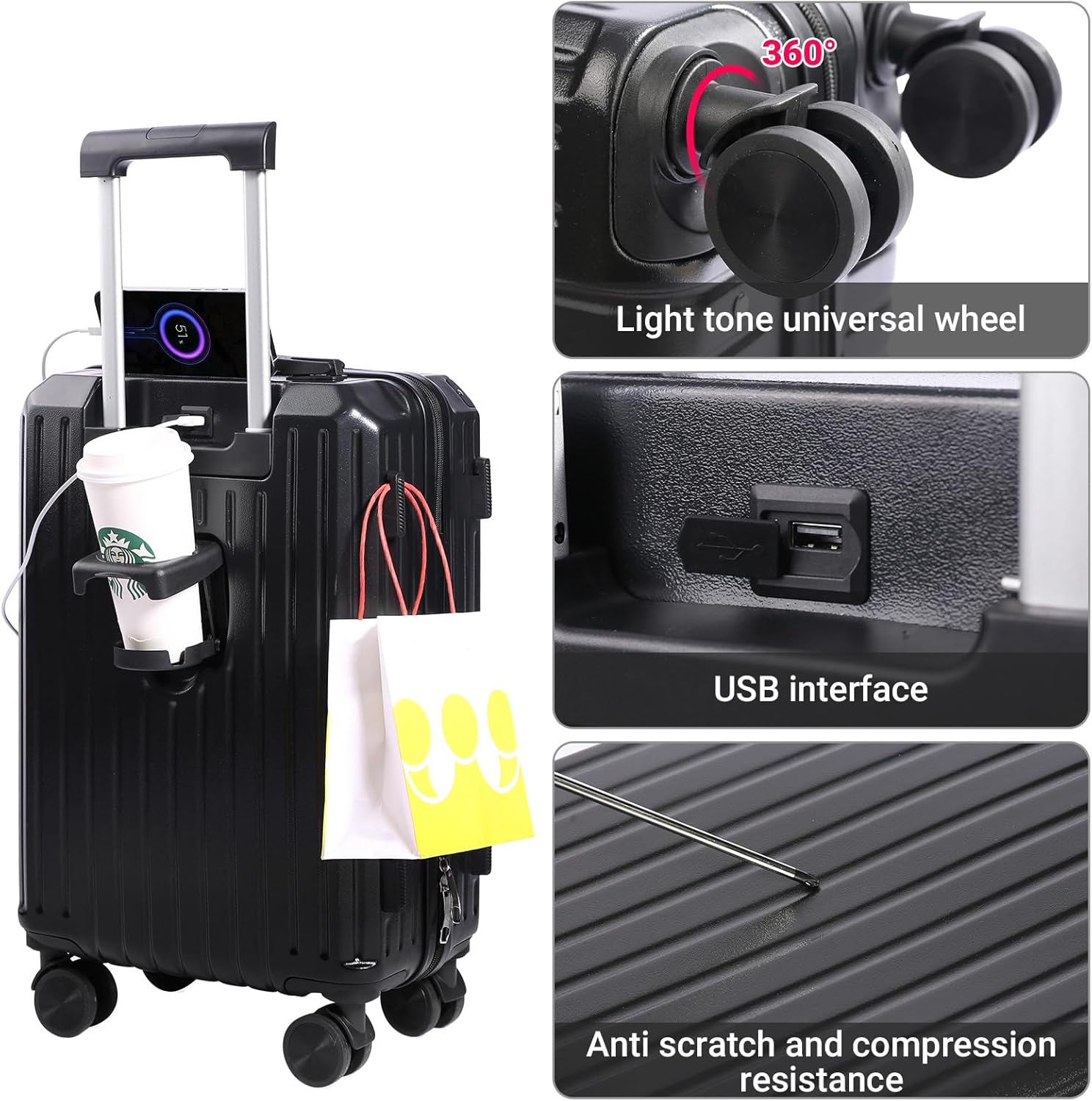 Store New Arrivals Add to Favorite View Feedback Contact Carry-On Luggage with Cup Holder & USB Charging Port, Hard Side Luggage with Spinner Wheels, Lightweight Luggage for Travel, Business (Black, Carry-On 20-Inch) Description Item model number luggage-4 Capacity 2466 Cubic Inches Color Black Product Dimensions 13.7 x 9 x 20 inches Country of Origin China Item Weight 3.27 Kilograms Department Unisex Size Carry-On 20-Inch DURABLE: This suitcase is made of ABS+PC material, ABS material is hard and easy to brittle, after adding PC material flexibility will be very high, touching although soft, but lifting is very light, the average adult standing on it are no problem. SECURITY: The luggage is equipped with a reliable 3-digit combination locking system to ensure the safety of your belongings while travelling, making your journey hassle-free. LARGE CAPACITY: Changing the way the interior is organised, using scientific zoning at a glance, allowing you to easily and conveniently pack your belongings and make travel storage in order. QUIET SPINNING WHEELS: The suitcase features 360° multi-directional spinning wheels that glide quietly and smoothly, providing effortless manoeuvrability and reducing travel noise to ensure an enjoyable travel experience. ADJUSTABLE: The telescopic handle can be adjusted to different heights to suit people of different heights, ensuring a comfortable and seamless pulling experience, as well as a stable and smooth stowage, making it a versatile and user-friendly travelling companion. Product Description Multi-Functional Suitcases For A Beautiful Journey And A New Life Of Relaxation And Comfort PRODUCT DETAILS Soft Plastic Handle Comfortable to hold for a long time Standing Legs Are Also Hooks Small items hang easily to free your hands Anti-Crash Metal Corners Protect the box from cuts and scrapes Security Combination Lock 3-Digit Combination Lock is easy to operate and makes traveling more secure External USB Socket For Smarter Walking Say goodbye to the hassle of holding a mobile power supply while walking. (Mobile power need to be placed inside to be charged on the go) ABOUT US We offer the best prices around on high quality products. Our E-store includes media such as books, movies, music and games while offering electronics, toys, sporting apparel, clothing, tools, general home, garden items and more. SHIPPING We are always working hard to ensure your package arrives as soon as possible. Please understand that some factors like weather, high postal traffic, and the performance of shipping companies are outside of our control. We offer free shipping to the lower 48 states and ship within 2 business days of payment, usually sooner. We do not accept P.O. Boxes. Please provide a physical address. For shipping outside of the continental USA, we only use eBay's Global Shipping Program.The item is shipped to KY and then sent to the rest of the world. International customers are responsible for all duties and taxes. Continue to check out in order to calculate costs for shipping the item to your country. Messages regarding eBay's Global Shipping Program MUST be directed at eBay EXCLUSIVELY. RETURNS We offer a 30-Day Return Policy on items which you are not completely satisfied with. You have the option for a full-refund or an exchange of the item. No returns are available on items shipped outside of the USA. PAYMENT We accept PayPal. CONTACT US This page content is yet to come Please ad us to your favorite seller and visit again later Thank You CUSTOMER SATISFACTION We try our very best to make sure every customer is completely satisfied. If there's a problem, message us! We're happy to help.