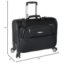 Description The 8-wheel spinner garment bag makes travel easier than ever. The 8 spinner wheels offer effortless mobility. The retractable push-button handle offers multiple height adjustments that allow you to achieve ultimate comfort. The garment bag features a universal hanging clip to secure hangers right from your closet. Multiple exterior zippered pockets allow you to conveniently pack any last minute items. This 8-wheel garment bag fits in the overhead compartment of most domestic airlines. Please check with your airline for specific carry-on luggage size requirements. Overall Dimensions: 21 inch W x17 inch H x 8 inch D (9.2 lbs.). Overall Dimensions (when open): 44 inch W x 21 inch L x 8 inches D. Packing Capacity: 21 inch W x14.5 inch H x 8 inch D. Silent and smooth 8 spinner wheels assure exceptional maneuverability. Aluminum 4-stage telescopic push-button handle system in Gun metal finish. Riveted top carry handle for long lasting use. Exterior dimensions: (H X W D): 21 x 14 x 9 inches; Open dimensions (W X L X D): 47 x 23 x 8 inches; Product weight: 9.5 pounds