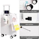 This carry-on luggage is designed to make your travel experience hassle-free. With a cup holder and USB charging port, you can keep your drinks and devices charged and organized. The hard side luggage spinner is made of durable ABS material, ensuring that your belongings are safe and secure during transportation. The luggage is expandable and ultra-light, making it easy to carry and store. It also features a USB interface, allowing you to easily charge your devices. Whether you're a frequent traveler or just looking for a reliable carry-on, this luggage is a great choice.
