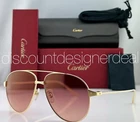 100% CUSTOMER SATISFACTION GUARANTEED Fast Free same day shipping Please visit our ebay page to see all our inventory. Brand new 100% authentic Cartier Santos aviator sunglasses. Full gold metal frame, Red gradient gold flash lenses. Pilot shape masculin design, with a strong and recognizable aesthetic. Identifiable Santos screws décor, symbol of the Santos de Cartier collection on the flat top bar, bridge and hinges as an aesthetic part of the element. Lenses with the top internal corners and the end tips shapes replicating the cut of the Santos watch case. Light and sophisticated temples with Cartier logo engraved. Double C Décor signature on the nose pads, and precious finish in gold. Comes with everything shown in images above : Cartier red box, Case, cleaning cloth, Soft cloth pouch and Cartier booklet. Product Details : Style code : CT0298S Color : 008 Full gold metal frame, Red gradient gold flash lenses. Size Details: lens width : 59 mm bridge length : 13 mm temple length : 140 mm “Thank you for choosing Discountdesignerdeal for all your optical and sunglass needs, we strive to ensure 100% customer satisfaction” NOTE : IF A BUYER PURCHASES AN ITEM WE CANNOT CANCEL IT AFTER 1 HOUR OF INITIAL PURCHASE. PLEASE ALSO MAKE SURE YOU PICK THE CORRECT ADDRESS AS WE CANNOT SHIP TO A DIFFERENT ADDRESS ON BUYERS ACCOUNT. FAST FREE PRIORITY MAIL SIGNATURE REQUIRED ON PACKAGES OVER 750$ BUYER IS RESPONSIBLE TO SIGN FOR PACKAGE.