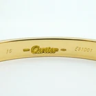 Cartier Bangle Love Bracelet K18YG Yellow Gold Ladies Description General Brand Cartier Design Type Bangle Gender Women Material Yellow gold (18K) Size Length 14.5cm / 5.7'' Specifics Included Items Accessories Case, Sale certificate Accessories Notice Before purchasing, please refer to the images of the accessories included with the item. Condition Condition Used (good) Ranking Rank AB Used - Traces of usage, scratches / dirt can be seen but generally in good condition Seller Ranking Rank AB Overall Scratches Slight Overall Dirt Slight Overall Traces of Use Slight Condition Notice Before purchasing, please refer to the images for the exact condition of the item. Information Powered by eLADY eLady's Condition Ranking New The item is brand new and has never been used. Used (like new) Mint condition or barely used. Used (very good) It is obvious that the item has been used previously but in very good condition. Used (good) It is obvious that the item has been used previously for a period of time but generally in good condition. Used (acceptable) It is obvious that the item has been used for a prolonged period of time but is still in acceptable condition for continued usage. Used (refurbished) The item is used but has been refurbished. For parts or not working Junk condition, can be used for replacement parts. Returns 14 Days No Questions Asked Refund If for any reason you should wish to return a product(s) bought from us, you can do so. Provided that the return met the following conditions, we will give you a item merchandise refund*, no re-stocking fee deducted and no questions asked! Item(s) are returned within 14 days of receipt Item(s) are returned in original condition with original packaging Please use EMS tracking service and write down "Return item" on your EMS invoice. *Note: Please be advised that eLADY will not cover any postage costs for returned products unless it suffers from manufacture defect. Payment We accept Paypal Only. Please make payment within 3 days after listing ended. Shipping FREE SHIPPING WORLDWIDE Items will be shipped worldwide with tracking number system. An E-mail with a tracking number will be mailed to you as soon as the package leaves our warehouse. Purchased items will be dispatched from Japan. Approximate delivery date is 3-10 days, depending on your location but delay may occur due to the process at the customs of your country or various other reasons. IMPORTANT NOTICE Import duties, taxes and charges are not included in the item price or shipping charges. These charges are the buyer's responsibility. Please check with your country's customs office to determine what these additional costs will be prior to bidding/buying. These charges are normally collected by the delivering freight (shipping) company or when you pick the item up - do not confuse them for additional shipping charges. Please be advised that eLADY will not cover any postage costs for returned products unless it suffers from manufacture defect. ABOUT eLADY eLADY, based in Tokyo, Japan, is a member of the International Anti-Counterfeiting Coalition, and a pioneering provider of patent-pending anti-counterfeiting solutions for luxury brand goods., under its brand. All of its items are inspected carefully by expert authenticators and come with a full, lifetime, money back guarantee regarding authenticity. eLADY is a global leader and a pioneer in anti-counterfeiting and has provided anti-counterfeiting training to hundreds of recycle shops and pawn shops in Japan specializing in pre-owned luxury brand items. eLADY provides various services to businesses interested in eliminating counterfeit items from the marketplace, including training, real time web-camera support, and other solutions based on the world`s most extensive database for the appraisal and authentication of luxury brand items. If you need your item to be authenticated, please contact eLADY. eLADY has been featured many times in Japanese media, including the cover of Newsweek (Japanese edition). eLADY is a Tokyo Prefectural Police Department Certified Dealer (Vendor Authorization Number: 301110005641) eLADY Ltd. 2-2-8 Roppongi Minato-ku Tokyo Japan 106-0032