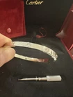 Cartier Love Bracelet Small Model - 15cm - 18k White Gold Has a custom engraving ‘’Love Dove’’ as shown in pictures. In great overall condition. Some light scratches and normal signs of use. Have all original paperwork and email purchase receipts etc.