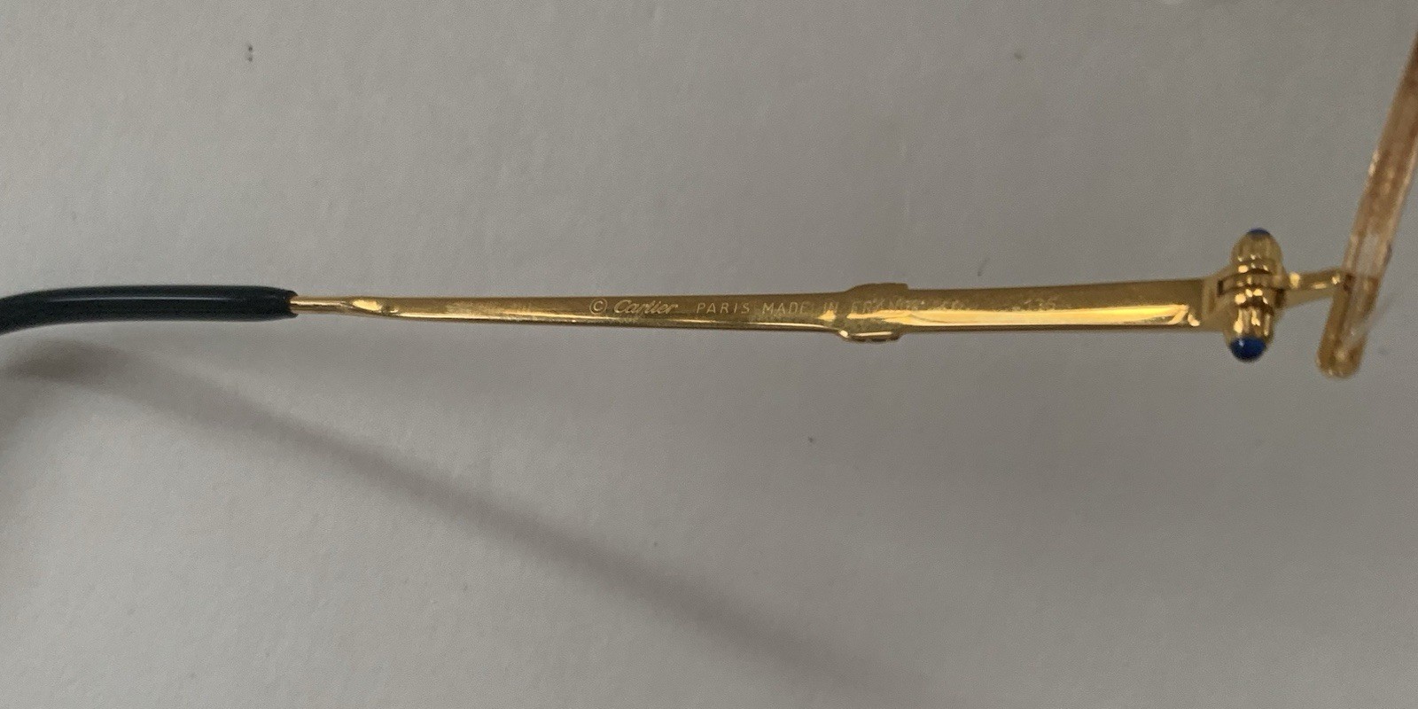 Beautiful Oval Vintage CARTIER vintage eyeglasses in size 52/18 135 model of the 'Semi-Rimless' Collection by CARTIER luxury Cartier half-frame, lightweight and flexible costly 22ct GOLD-PLATED with jewel on top of stem for ladies and gentlemen Put in your own prescription Rare, unworn Comes in box The Cartier Manhattan 22 K Oval Glasses from the 90's are a stylish and timeless accessory. These vintage eyeglasses feature a classic oval shape that adds a touch of sophistication to any outfit. Made by the prestigious brand Cartier, these glasses are sure to make a statement and stand out from the crowd. Perfect for those looking to add a touch of vintage charm to their look, these oval glasses are a must-have for any fashion-forward individual.