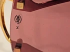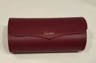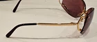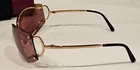 Vintage Sunglasses Cartier Pasha De Santos Rimless Gold Purple Rose 3798744 Case cloth Vintage 1990's authentic. In good preowned condition. I have taken many different photos of lenses and temples. Please review all and use eBay zoom for closeups. Includes Sunglasses, Cartier Lens Cloth and Red Case Frame has numbers 3798744 by the nose piece with numbers 72 9 (lens size) and temples are 140 Frame is in good condition. No bens or scratches on frame. Ear pieces in good condition. The sunglasses are rimless design in gold. Lenses are a rose/pink/purple color. A few small dots on lenses. No major scratches. Please use eBay zoom on the photos for closeups. I have photos of both front and back and close-up of each lens. Black Cartier Lens cloth included with Cartier logo. Size 5 1/2" Square Red Cartier case with black inside. Cartier written in gold on front case has some knicks and missing red leather. Inside is clean. Please see all photos, questions please message before purchasing. I do combine shipping. Please see my other vintage high end sunglasses I have listed. Shipped with FedEx with Insurance.