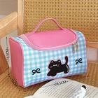 Features: Lovely cartoon kitten makeup bag offer space to store all your makeup essential, toiletries, and so on. Convenient to carry your belongings, cosmetic bag is great for travel and daily use. Large capacity toiletry bag is great for storing your cosmetics such as lotion, eyeshadow, brush, mascara, eyeliner and other small item. Makeup storage bag is convenient, very suitable for storage of cosmetics in suitcases and easy to carry. Handheld wash bag allowes you to keep your care item organized and easily accessible. Specifications: Component: PU+Canvas Inner Component: PU Size: about 16.5x15.5x25.5cm/6.50x6.10x10.04'' Color: 2 Kinds Optional Package Includes: 1 Pc Makeup Bag note: Please allow 1-3cm errors due to manual measurement. Due to the difference betweeen different monitors,the picture may not reflect the actual color of the item.