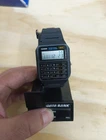 Introducing the Casio Calculator Watch DataBank in black, model DB02. This wristwatch features a digital movement, analog display, and 100 m (10 ATM) water resistance, making it a great choice for both sport and casual wear. The black rubber band complements the black plastic and rubber case, while the black dial adds a sleek touch to the overall design. This watch also includes a calculator and comes with its original box/packaging, making it a perfect gift for any man who loves watches or mathematics. With no hour marks and an unknown year of manufacture, this watch is a timeless addition to any collection. Don't miss out on this opportunity to own a classic Casio calculator watch.