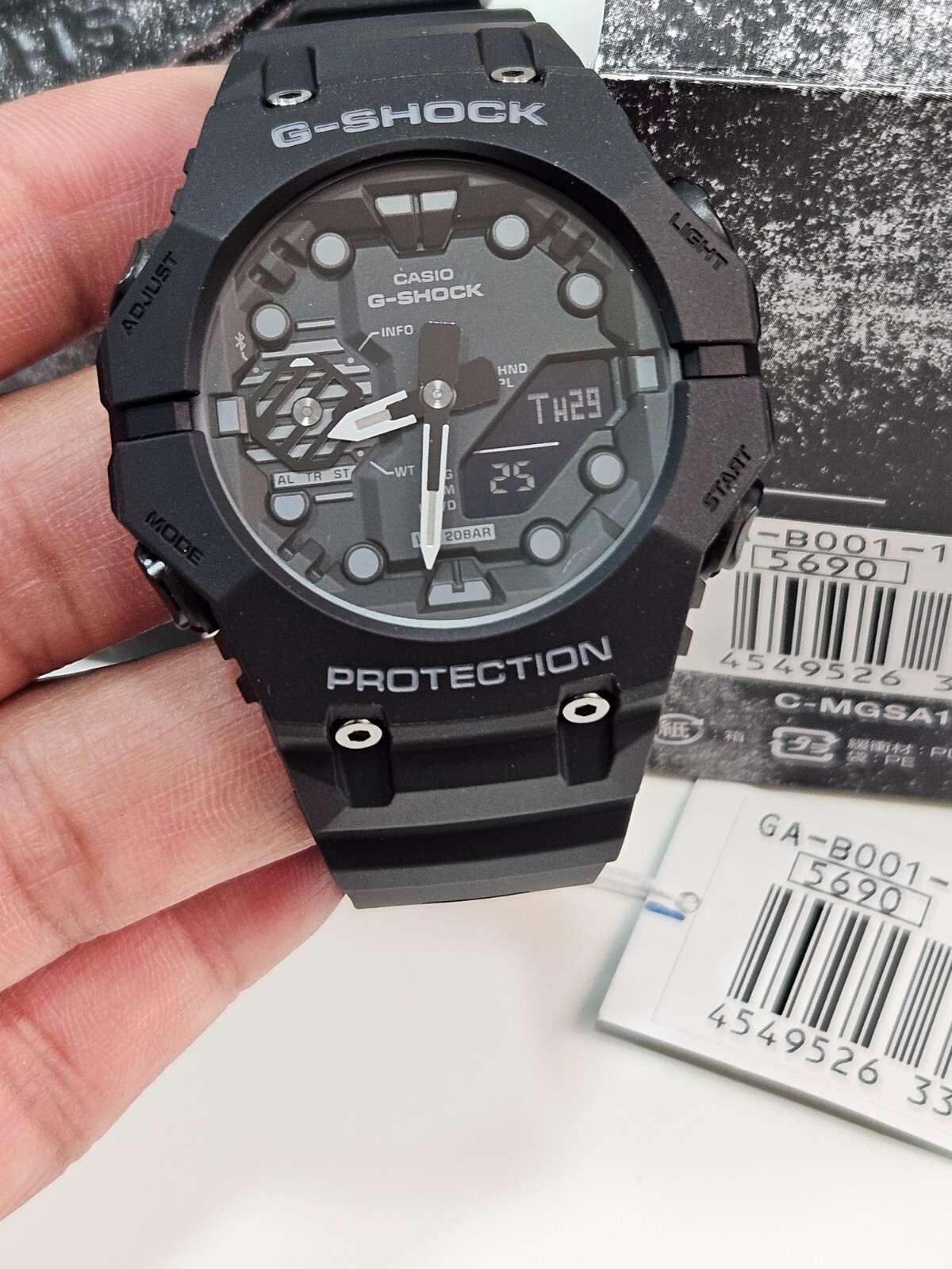 Brand: Casio Model: GA-B001-1ADR Series: G-Shock Gender: Men's Movement: Quartz + Digital Display: Analog-Digital Case Color: Black Band Color: Black Case Material: Resin Band Material: Resin Water Resistance: 200 meters / 20 bar Features: Shock Resistant, Bluetooth Connectivity, World Time, LED Light, Stopwatch, Alarm Condition: Brand New with Box and Tags Description: Brand new original Casio G-Shock GA-B001-1ADR men's wristwatch. This stylish, all-black model combines rugged toughness with smart Bluetooth features for syncing time, notifications, and more. Key Features: Tough G-Shock build Bluetooth mobile link functionality 200-meter water resistance World Time & Stopwatch LED backlight Resin strap for comfort and durability The watch comes in the original Casio tin box with user manual and tag.