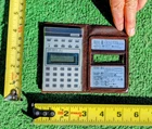 Excellent Used Condition (EUC), no chips, no cracks, there is writing on the back of the calculator, and it has not been powered on. Micro computer compact design measuring 3.5" tall, 2" wide, & 0.25" thick and when in the folding carry case it measures 5" wide, 4" tall, and 0.5" thick. Includes the brown vinyl case with CASIO micro computer quartz printed in gold on the face When opened there are instructions in metal printed onto the inside cover. Uses 2 AG10 batteries that have not been replaced. 5LS