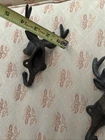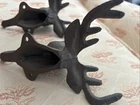 This product is a set of two cast iron deer buck antlers that can be used as cabin wall mount coat hooks. The hooks feature a rustic hunting cabin style with a metallic brown finish, adding a touch of nature to your home decor. Made of iron and metal, these hooks are durable and easy to install with no assembly required. Perfect for adults looking to add a unique touch to their home organization system.
