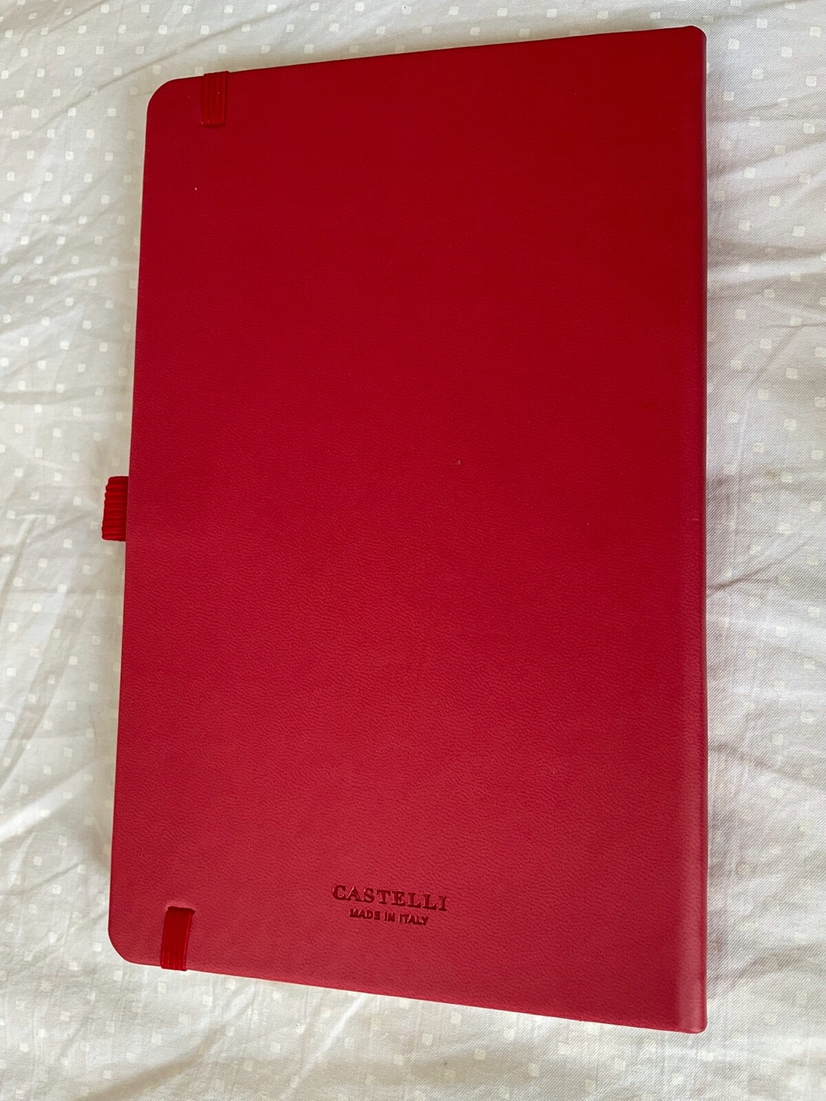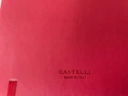 Notebook Castelli Made in Italy Red Leather Pioneers are Future Ready Ruled NEW Measurements: 4 inch x 6.5 inch x 0.5 inch Contains elastic band to securely close the notebook Contains a red elastic band to hold your pen. Ruled Has a paper folder on the back cover Pfeiffer Pioneers Are Future Ready Has a beige silky ribbon as a page divider Name and Address on the first page in case of loss Hardcover leather bound