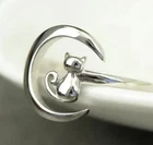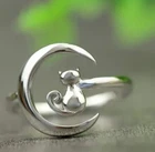 Cat 925 Sterling Silver Ring, Animal Lover Designer Adjustable Half Moon Jewelry