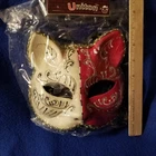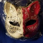 Add a touch of mystery and sophistication to your masquerade party outfit with this stunning Venetian-style Cat Eye Mask. The mask features intricate details of red and gold glittery accents that catch the light beautifully, making you the center of attention. The mask fits comfortably and securely with its one-size-fits-all design. Perfect for both men and women, this mask is a must-have accessory for any masquerade-themed event. Its unique cat-eye shape and elegant design make it stand out from traditional masquerade masks. Impress your guests with this beautiful mask, and let the good times roll!