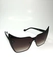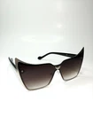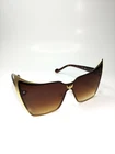These oversized cat eye sunglasses are designed for women and feature a stylish black cat theme. The lenses are made of UV400-protected plastic, with a rimless design for a modern touch. The frame is a combination of brown, black, and gold metal, adding a glamorous flair to the overall look. Perfect for adding a bold statement to any outfit, these cat eye sunglasses are a trendy and fashionable accessory for any woman's collection.