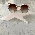 Cat Eye Sunglasses Retro Women Fashion UV400 Striped Brown White Gold Color Legs Style: Cat Eye Frame Material: Plastic Frame color: Brown White (striped) Legs color: Gold (metal) Lens Material: Polycarbonate Lens color: Brown (Tea) Sunglasses Style: Fashion, Stylish, Outdoors Sunglasses Function: UV 400 Protection, Anti UVA, UVB Lenses Optical Attribute: UV400 A Felt Bag Case is included Measurements are approximate: Lens Height: 2.25" (5.7 cm) Lens Width: 2.5" (6.35 cm) Total width: 5.5" (14 cm) Weight: 1.1 oz (32g)