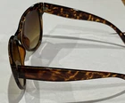 These stylish sunglasses feature a trendy cat eye shape with frames in a brown tortoise shell, mottled color. The lenses have a brown tint and the sunglasses are suitable for both men and women. The model number is #49257912 CAT#2 and the brand is unknown. The sunglasses are perfect for various occasions. With a retro and boho style, they can upgrade any outfit and are perfect for those who love art and a classic look. These sunglasses are a must-have for any cat eye and leopard print lovers. These are over 10 yrs old and the frames are in excellent condition. There are some scratches on lenses due to age ( see photos). If you want more photos or have any questions please ask. Inside left side read China 49257912. Right side reads 56 22 142mm CAT #2 CE. Each eye frame measures2.25” long and 2.75” wide.