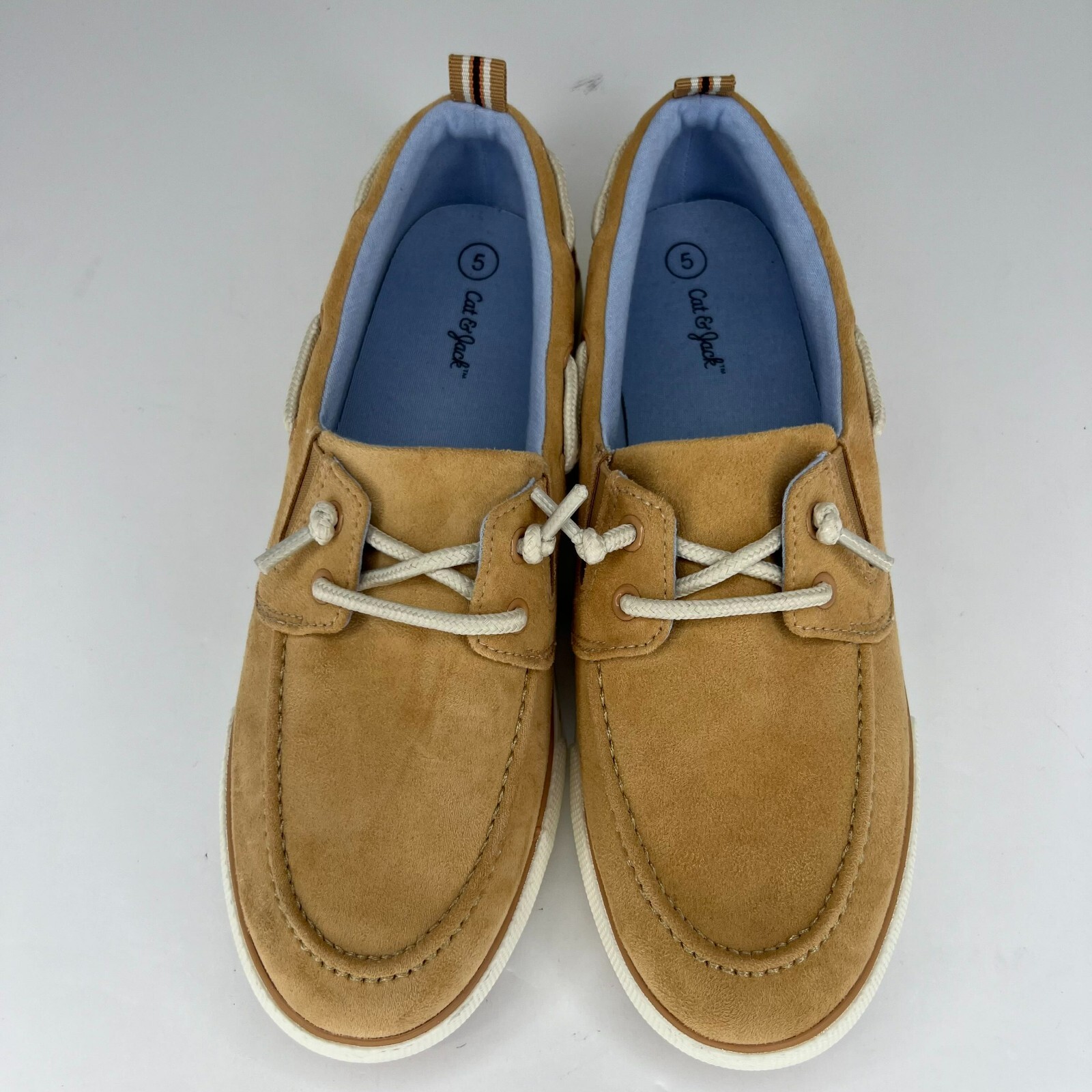 Step out in style with these Cat & Jack men's boat shoes. The brown solid faux suede upper material combined with a round toe shape and lace-up closure makes for a comfortable and casual look. These shoes are perfect for any occasion, whether it be a day out with friends or a casual walk around the park. The outsole material is made of faux suede, adding to the durability and comfort of the shoes. With a UK shoe size of 4.5 and a US shoe size of 5, these shoes are available in EU shoe size 37. The brand, Cat & Jack, is known for its quality and style. These boat shoes are a must-have for any fashion-forward man. 100% CUSTOMER SATISFACTION IS OUR GOAL! Our items are always carefully examined for condition, measured if necessary, and photographed in a climate controlled and smoke-free environment. We make every attempt to accurately describe and clearly picture the items we have for sale. Please, ALWAYS view all of the photos. We value your business and our goal is your complete satisfaction. FAST SHIPPING All items are packaged with care and shipped out the same or next business day via USPS, FEDEX, or UPS with tracking numbers so you are always informed. RETURNS We offer a 30-day return policy. All items must be unused and unopened in the condition in which they were received, with original packaging, and all accessories included for return. REVIEWS - CUSTOMER SATISFACTION - COMMUNICATION We aim to make you happy. After you receive your shipment, please leave a positive review . If you have concerns or questions about your order, please contact us so we can resolve the issue. We will do our best to make you satisfied. THANK YOU FOR YOUR BUSINESS!