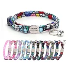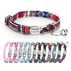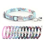 Product Name: THAIN Cat Collar Personalized with Bell-Custom Cat Collar Engraved nameplate with Name and Phone,Adjustable for Cats and Kitten Material: Nylon+ Half Metal Buckle Size: S (7"-11")(18-28cm) How to Order Please write engraving details in box at the top of listing page. Product Features: ★ 【 Adjustable Size 】 0.39 inch width,neck adjustable is 7 inch to 11 inch(18 to 28cm),adjustable design makes it fit most cat from teenager to senior, even good for other small pets in similar size; Please confirm the size before purchase ★ 【 Half Metal Buckle 】 Half Metal Buckle can be engraved words, quick release is easy for you to put on and off. ★ 【 Material 】 Made of durable nylon with printing pattern, The nylon webbing has smooth sewed edges. Great for almost all indoor cats and small puppy dogs. ★ 【 Multiple flower patterns 】 There are different 16 multiple patterns to choose, flower, plaid, Green Camo and so on ★ 【 No More Noise 】 The half metal buckle is made of stainless steel but lightweight. Compared with hanging tags, it will never get caught somewhere and great for quiet cats, no more noise to hite the bowl when eat or drink. Metal Buckle where we will engrave the pet's name and phone number or address Laser engraving makes words are clear, keeps pet's information engraved permanent. Note: For engraved words,please send us a message as below: Line 1: pet's name Line 2: phone number Smaple: Line 1: Bella Line 2: 012-345-6789 How to choose the right size? Measurement Tips: Please use a soft ruler around your Cat's neck, to measure the surrounding of it. Please don't make it too tight. Better leave a space that can put 2 fingers. So your puppy may feel more comfortable. Package include: 1 pcs pet collar Shipping: 1.Items will be sent out in 24-48 hours on payment received from Monday to Saturday. Orders during weekends and holidays will be posted in the following working day. 2.it usually will take 15-20 business days to arrive by SPEEDPAK. 3.Please make sure your shipping address and the order information is correct before placing an order. We will not be responsible for item loss due to wrong or unknown address. 4.International buyers are responsible for duties and customs fees. Return Policy & Warranty: 1. In our store, you will enjoy 30 days return/refund guarantee (Excluding misuse of the item and damaged item). 2. If the item you received is faulty, damaged or incorrect, or any further problems, you can return it for replacement or refund, please contact our customer service on eBay within 30 days from item received. 3.For damaged items on arrival, please contact us immediately, sending us an email with a photo is preferred. We will offer solutions to such cases. Full refund or replacement will be guaranteed. Contact us: Customer satisfaction is very important to us, our goal is to earn 5 star positive feedback on every sale! We would appreciate the chance to correct any problems before posting anything other than 5 stars positive feedback. So if for ANY reason you are not happy, please contact us directly through “My Massage” or "Ask Seller Q". We will get back to you as soon as we are available. We are always stand-by to help for any questions or concerns.