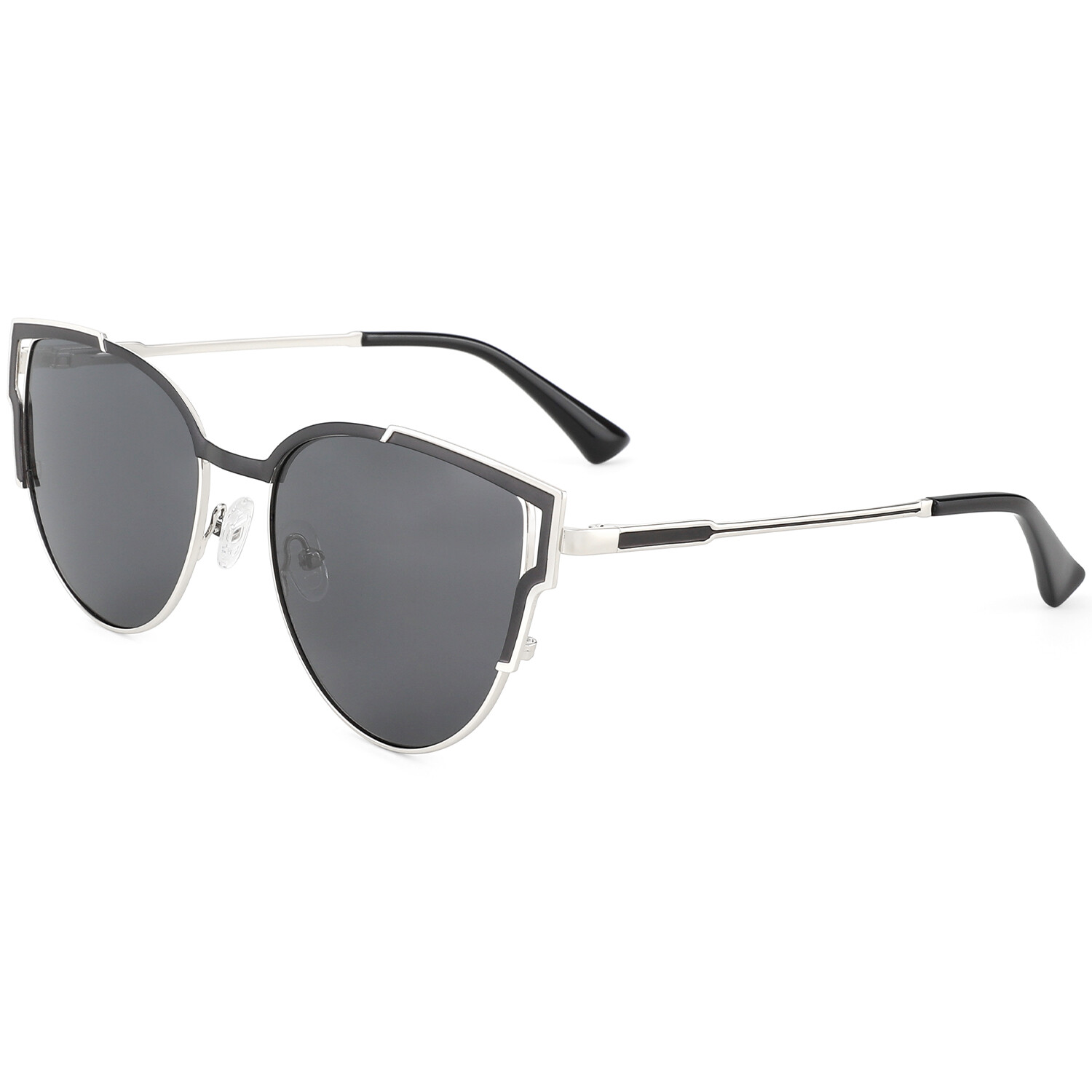 SPECIFICATIONS Block 100% UVA / UVB / UV400 wavelengths : Yes Polarized lenses : Yes Wrap & Angle : Low Rim: Full Rim Shape: Cat-Eye Material: Metal FRAME SIZE Lens Width: 55 mm Bridge: 18 mm Temple Length: 143 mm