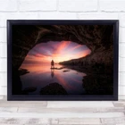 Cave Sea Sunset Silhouette Rocks Calmness landscape Wall Art Print