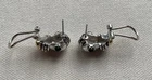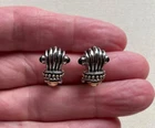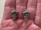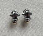 Love these, really well made and great designer copy. Right around .75" long and at widest on top .5" across so every day elegance. Has a shrimp style to it but tapers to the bottom. Top is like scallop shell with accents of a black cabochon almost bead. At the base of this is a caviar band and below a gold tone bottom. Lever back - nice and secure, beautifully made. Classic elegant look, blends to any style, any skin tone - super versatile. Day into evening. Super rich look. Beautiful workmanship. CONDITION: Ready to wear - tone is good (both silver and gold tone). Post straight. Lever good. Excellent condition. Please enlarge and review all pictures to judge condition for yourself. Please read the entire important information paragraph below. SHIPPING: I try to ship daily Monday through Saturday, provided payment is received and the post office is still opened. IMPORTANT INFORMATION : Most of the items I sell are pre-owned and therefore I can offer better prices. Most items will have normal wear and tear, including scratches to hardware, wear to fabric, leather and metal, tarnish, discoloration, etc. Significant damage or other unusual features will be noted in the condition. I do not photograph every blemish, but again anything significant will be noted in the condition, and I use detailed photographs as part of my description so please check them carefully and ask any questions prior to bidding/buying. Only what is photographed is included except props in order to photograph the item. I crop pictures to show detail and therefore items may appear larger than they really are so please refer to dimensions which will be noted in the description or contact me for any further information you may want. By bidding/buying you acknowledge that you have read this and agree with the conditions. Your satisfaction with your purchase is very important to me. If there is a problem with your item, please contact me prior to leaving negative feedback and I will attempt to resolve it with you. Feedback on your purchased item would be greatly appreciated so I know you are satisfied, and others can buy with confidence. Thanks for visiting The Original Ourfindsonline! Reference # A2271