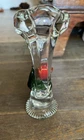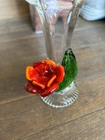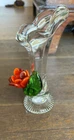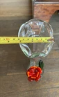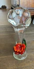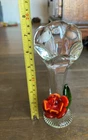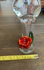 Celebration Crystal Art Glass Vase Clear With Applied Red Flower W Green Leaves