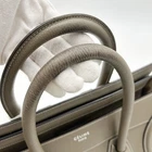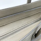 This Celine mini tote is a dream! The gorgeous grey drummed calfskin leather is so soft and chic, with just the right amount of subtle texture. The size is perfect for everyday—fits all my essentials without feeling bulky. Love the silver hardware and smooth zipper closure. The interior lambskin lining feels luxurious, and the beige color keeps it bright inside. Shows some gentle corner wear, but that just adds character—still looks incredibly polished. A timeless piece that elevates any outfit effortlessly!