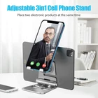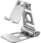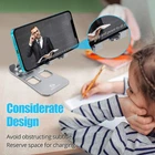 This aluminum mobile phone stand is a 3 in 1 folding phone stand that can hold two devices in the same time. Cellphone and tablet or Cellphone and wrist watch. This desktop tablet cradle is 270° adjustable in angle. It's an aluminum smart phone holder that can be adjusted by one hand to hold phone to the best viewing position. This folding cell phone stand is made with silicone pad to protect phone or tablet from scratches while placed on it. You can move or adjust your device very securely. This cell phone and iPad stand is an anti-slip cellphone with anti-slip base to securely hold your phone while firmly placed on your desktop. It secures your phone from dropping. This tablet stand is very light double folding iPad stand. It fits your pocket and carry it wherever you go. This cell phone folding stand helps save more desktop space.
