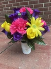 Purchase a lasting tribute for your loved ones with our exquisite Memorial Silk Flower Arrangement. Handcrafted with care, each arrangement is a symbol of love and remembrance, designed to bring comfort and beauty to any gravesite. Product Specifications - Comes as pictured - Bouquet Base: made from industrial grade polystyrene Placement Our silk flower arrangement are made to fit into vases with at least a 4" top diameter. If the top of the vase is less than 4", you can either trim polystyrene or push the arrangement as far down as the vase allows. Website www.rosyarc.com