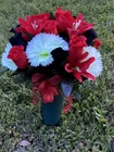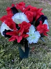 Cemetery Vase Memorial Silk Flower Arrangement Red, Black & Bright White