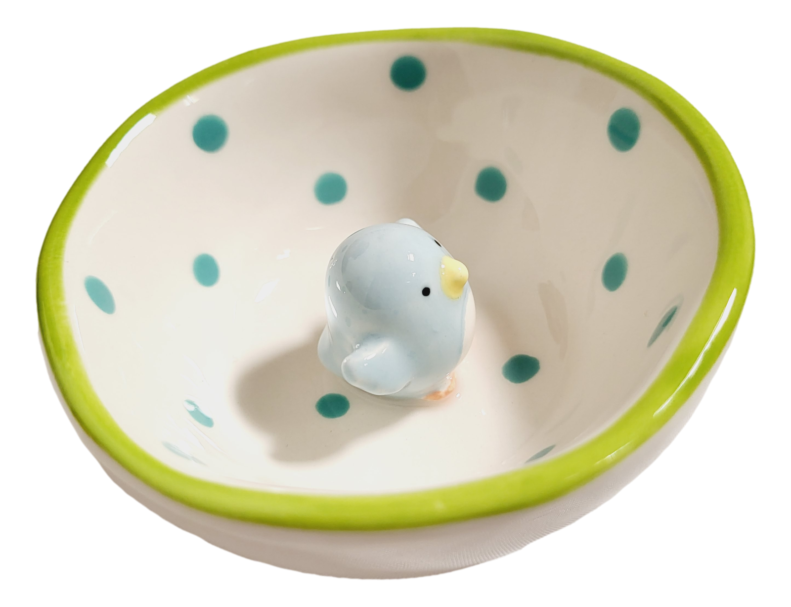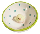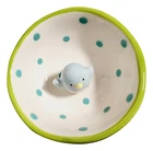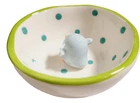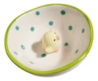 The Grasslands Road Studio 100 Ceramic Mini Jewelry Trays Trinket Dish is ideal for holding your rings. earrings, necklaces and more. Keep the jewelry dish handy and close to a sink to put your rings in for safe-keeping while washing hands. Place on nightstand to hold jewelry, beads, and more. Features dot design and little ceramic birdie figure in center of jewelry dish. Each measures approximately 3 inch round. Set of 2, includes 1 of each style.