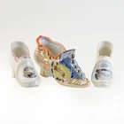 For sale are a lot of 3 Victorian Style Ceramic Shoes. They are all souvenirs from Niagara Falls. There is one larger shoe that measures about 5.5 inches long. It is very colorful in gold and blue luster with orange & yellow accents. This shoe has a decal saying Souvenir of Niagara Falls which is legible but warn. It is stamped and embossed Made in Japan. The other two shoes are smaller, about 3.5 inches long and both are decorated with different scenes from the Falls. One is stamped Made in Occupied Japan and the other is stamped "Metropolitan Design Copyrighted". These are all vintage items and so are pre-owned and used. They may show some signs of cosmetic ware but are in good condition with no chips nicks or cracks. It may have some imperfections caused during hand painting or the manufacturing process. The decal on the largest shoe shows wear. Please see images for size, condition and details. Feel free to reach out to me with any questions and thanks for looking! Your item will be packaged carefully and mailed the best way with tracking.