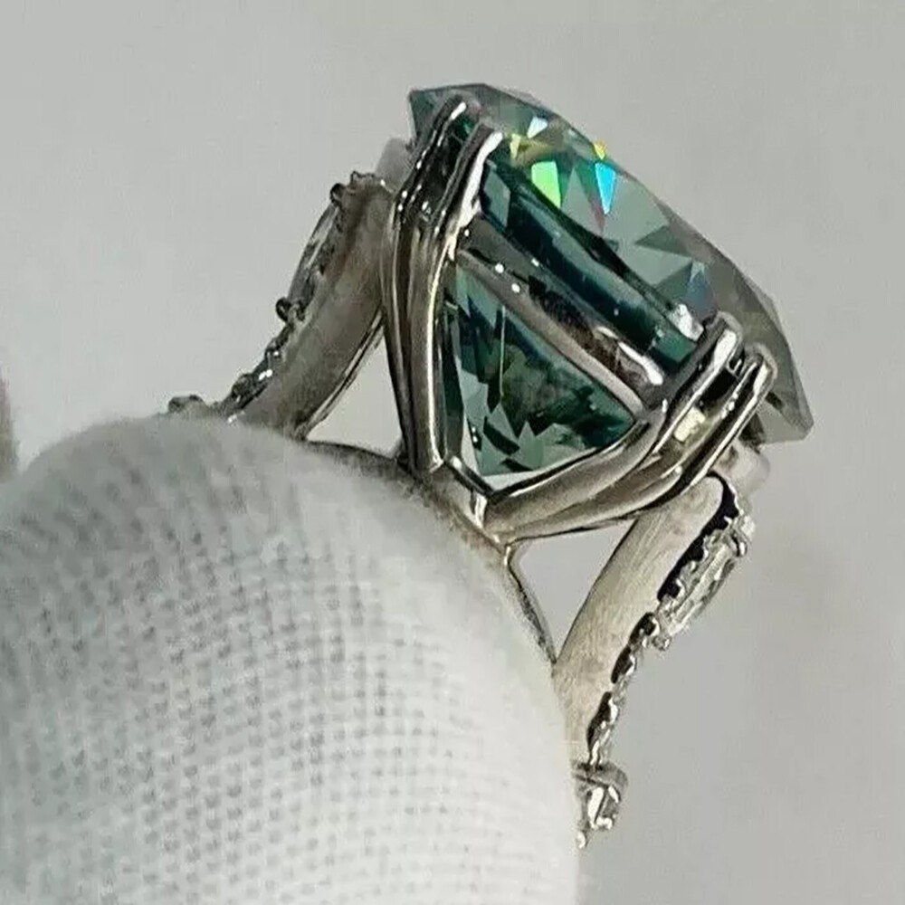 $ 114.877.30 Ct Certified Blue Diamond Emerald Cut Solitaire Ring 925 Silver Ring