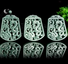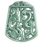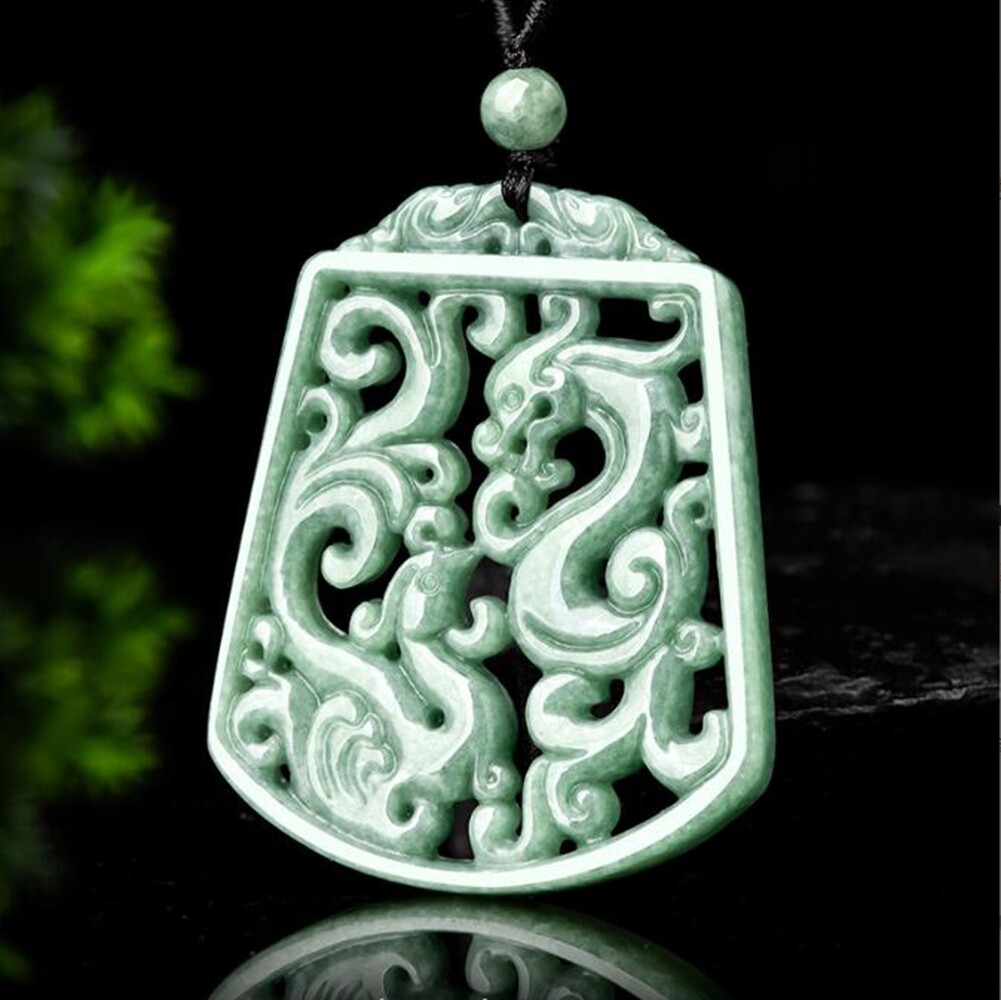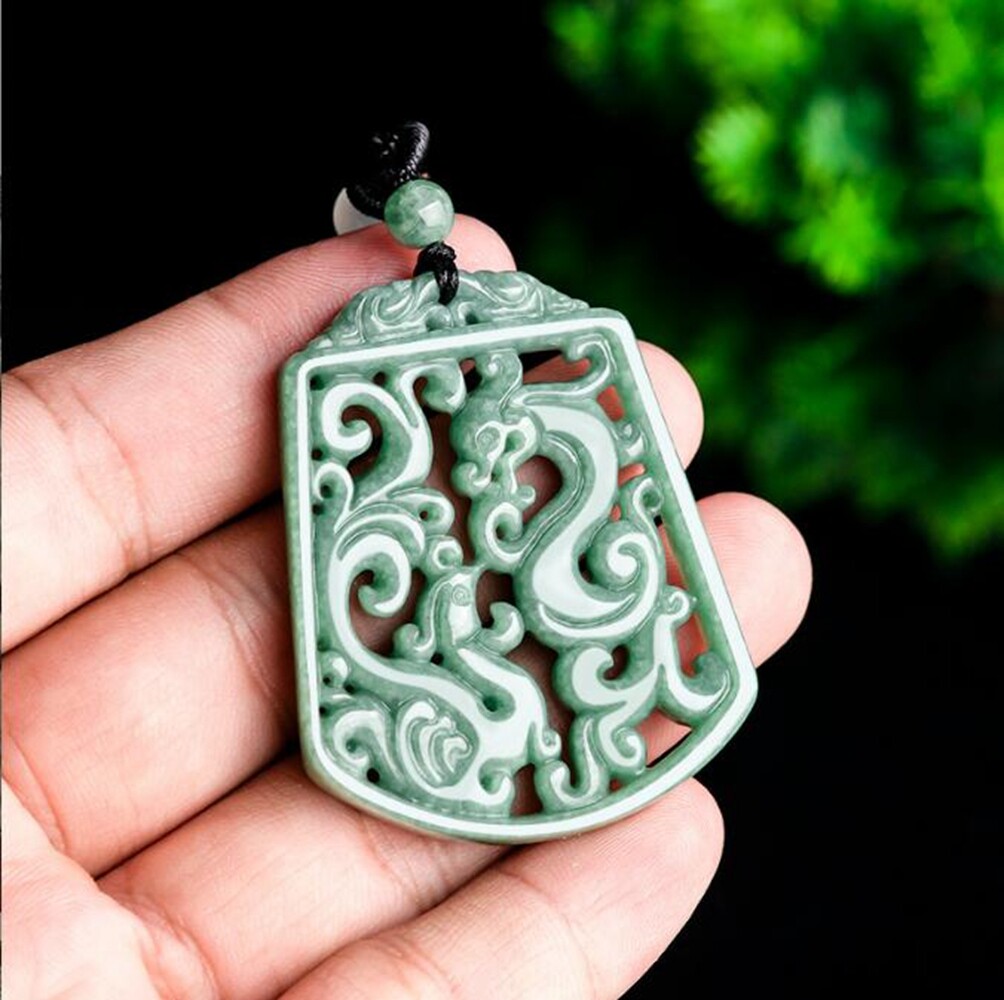 Certified Grade A Natural Green Jadeite Dragon Phoenix Carved Pendant for Luck