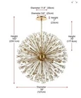 Design Information Category: CHANDELIERS Finish: Goldish Crystal: Clear Material: Metal, Glass and Crystal Dimensions and Weight Width: 50.00 in. Height: 50.00 in. Min Hanging Height: 63.00 in. Max Hanging Height: 101.70 in. Canopy Width: 8.70 in. Canopy Length: 1.00 in. Weight: 100.00 lb. Bulb Information Bulbs Included: Yes Bulb Shape: G25 Bulb Category: Incandescent Primary Bulb(s): 34 x 40 watts E12 Light color:Warm light Product Rating Voltage: 110V-125V Safety Rating: ETL Standard Other Specifications Included Suspension: 46" of Chain. Included Lead Wire: 144.00 Warranty: Limited 1 year on finish and frame. Additional Details Assembly Required Adjustable Chain, Rod and Cord Finish: Gold Wire color: Black Minimum Hanging Height: 63" Hardware Material: Steel Hardware Finish: Gold Number of Tiers: 1 Lamp Direction: All Round Payment About us Return and feedback Delivery time Pay attention Payment International Buyers – Please Note: a) Import duties, taxes and charges are not included in the item price or shipping charges. These charges are the buyer's responsibility. b) Please check with your country's customs office to determine what these additional costs will be prior to bidding/buying. About us We are pleased to offer the most up to date items at competitive prices. You can rely on us to deliver the most on demand products within short timescales. Return and feedback We hope you love our product but if for any reason you want to return it or you’re not fully satisfied with your new product, please contact only Via eBay Message ,please Do not open case or return or left negative and neutral feedback ,we can solve it happily by messaging. Delivery time 1.Items will be shipped to buyer's eBay registered address. Please confirm your eBay address before you make the payment. We don't accept to revise address after you make an order. 2.Items location is in China, due to geographical distance, please be advised that the international shipping usually take longer than domestic. 3.All lights come seperately,need to be assembled by buyer,we highly suggest to hire a electrician. Pay attention 1.please make sure you write correct address,we are not able to revise address after you make an order. 2.item maybe come with several packages,please message us if you only get part of them or something missing. 3.if there has accident,please do not open return or item not received case or left negative and neutral feedback before you contact only Via eBay Message ,we are glad to offer reasonable solution.